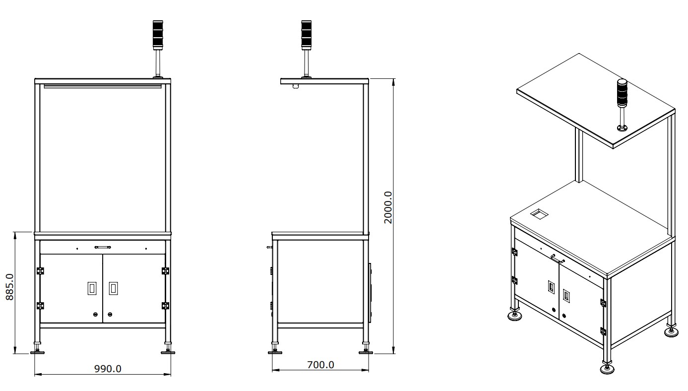It’s a tester unit designed and developed for testing the battery terminals of batteries such as in the Electrical Control unit of a car. The system has proximity switch that ensures the presence of the battery. The system contains a scanner for scanning the barcode and a label printer to tag the parts that pass the test. The camera and monitor system is an added benefit for maintaining the quality of the system.